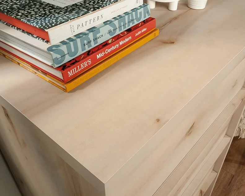moreSafety tested for stability to help reduce tip-over accidents. Drawers feature metal runners and safety stops to keep you and your family safe. T-lock drawer assembly system for easy and more efficient assembly. This chest has been thoroughly tested in an ISO 17025 accredited lab that is Underwriters Laboratories certified. It meets ASTM International's industry standard ASTM F2057-19 Safety Specification for Clothing Storage Units, which is intended to reduce hazards to children 5 and under due to tip-over of furniture. Pacific Maple® finish.