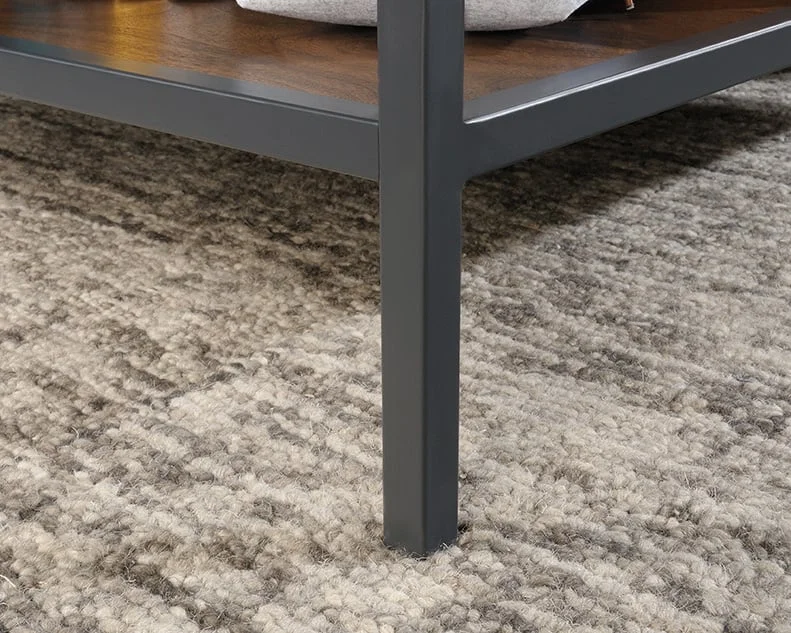 morePartial top lifts up and forward to create versatile work surface for bills, working from home, or even snacking. Hidden storage beneath top for blankets, games, remotes and much more. Divided storage shelf for your favorite home décor and memorabilia. Finished on all sides for versatile placement anywhere in your home. Powder coated metal frame for durability. Grand Walnut® finish.